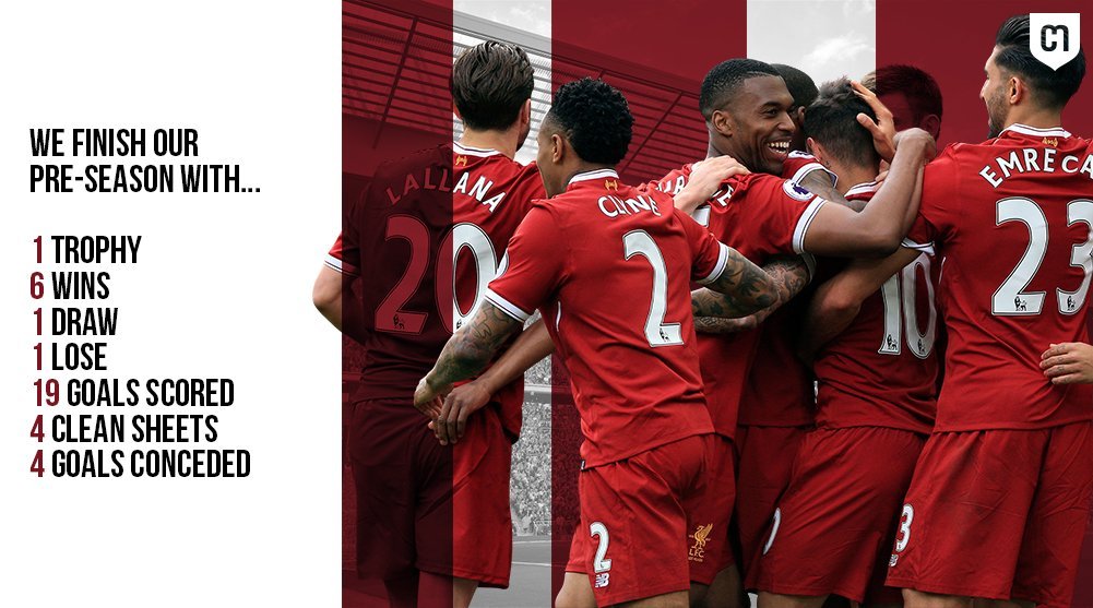 The reds head into the new Premier League campaign on the back of an unbeaten pre season looking defensively sound and lightning in attack. New summer signings Mo Salah, Andy Robertson and Dom Solanke seemed to have settled with the group well showing some signs of great things to come. As a whole I think all reds fans can be excited ahead of the first game vs Watford this Saturday lunch time.