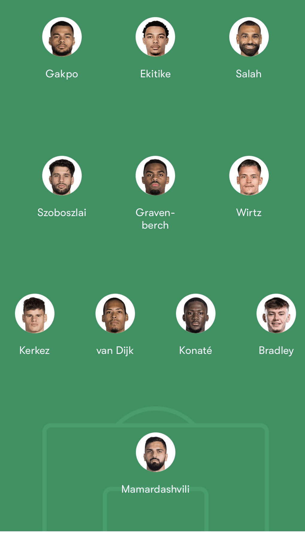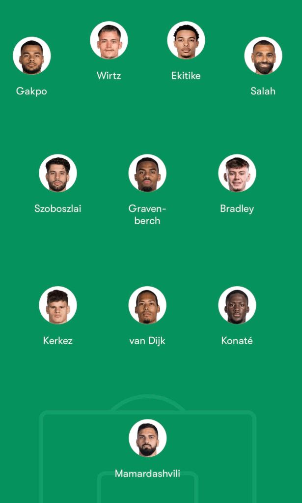 Szoboszlai and Gravenberch completed the midfield three, with Gravenberch typically staying central and slightly deeper, while Szoboszlai and Bradley operated either side of him.